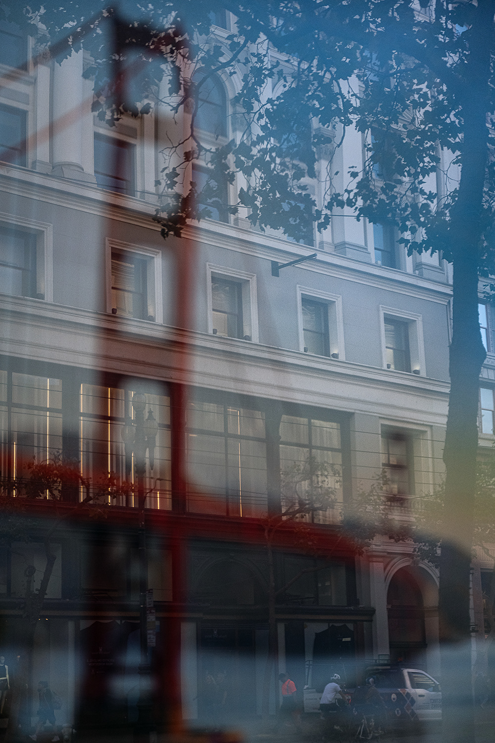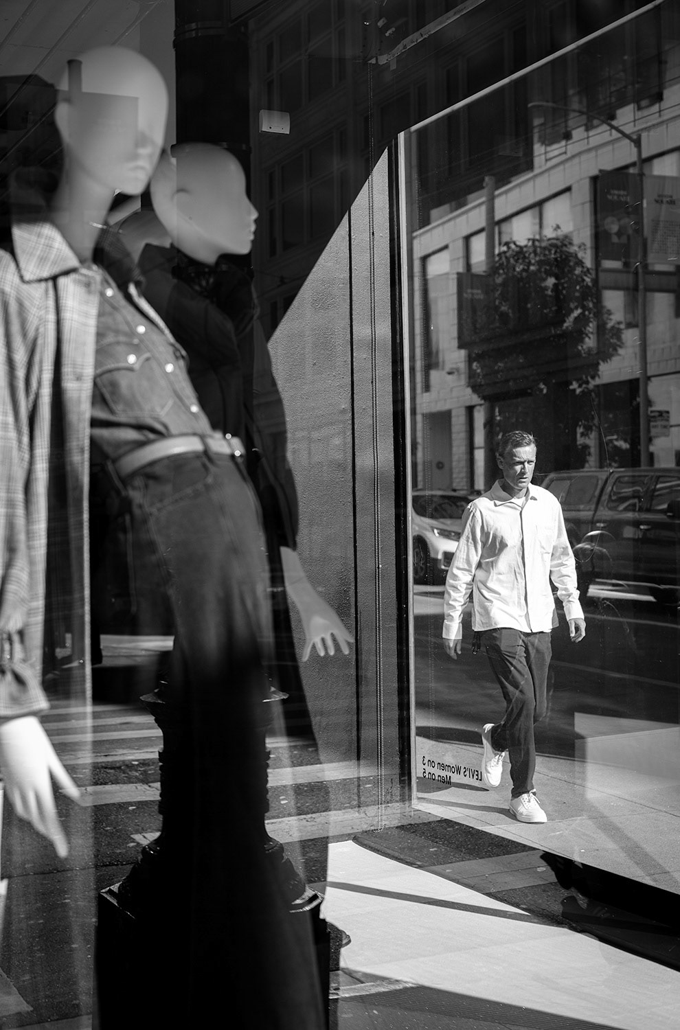 These images explore my fascination with seeking the small breaks in reality, the brilliance of light, and with seeing something as it appears in a reflection, how the slight distortion makes the moment feel like a memory. In my collection, you will find many mannequins, a constant fixture on city streets, often unnoticed and underappreciated. I find myself so drawn to those human-like figures that watch us as we walk by. Realizing how few humans look past the clothes and accessories and feel something deeper. There seems to be almost a psychological pull for some to anthropomorphize objects, as if it's a desire for human connection in this crazy, busy, and often lonely world.